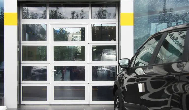 - К преимуществам можно отнести бесшумную работу, более 8000 вариантов оформления, срок службы до 17 лет, проемы до 9 м.